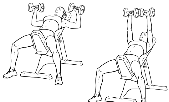 - Step 1: Pick up the dumbbells off the floor using a neutral grip (palms facing in). Position the ends of the dumbbells in your hip crease, and sit down on the edge of an incline bench.
