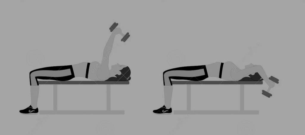 - Step 1: Holding a medium-to-heavy dumbbell, lay with your back flat on a bench or stability ball.