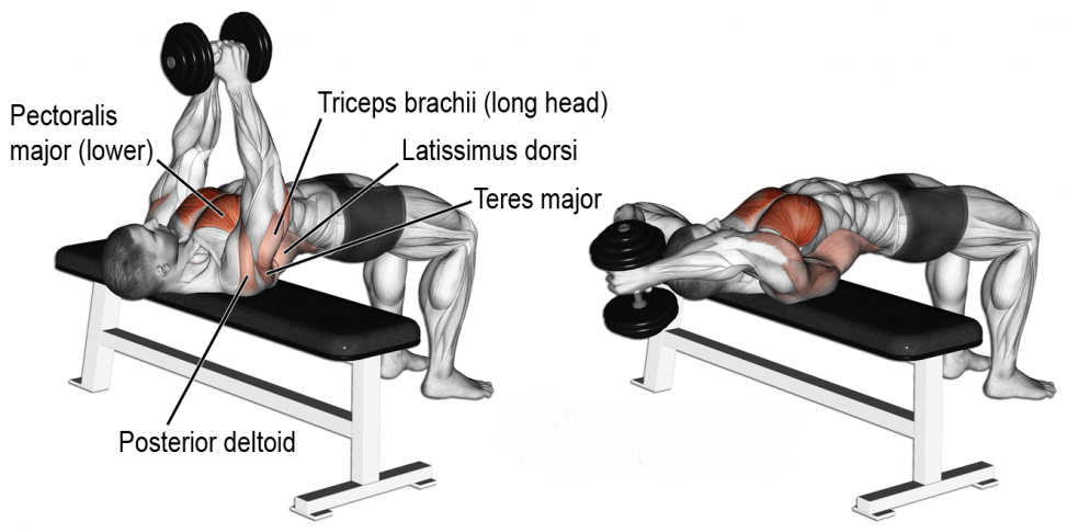 To create hypertrophy of the lats you want to switch the focus from one of blended muscle involvement to more isolation. Here, the dumbbell pullover is the winner. By dropping the hips you’ll be able to increase the stretch on the lats and place an even greater eccentric stretch on the muscles (a known stimulus for muscle growth and size). Add in the drop set to the forced eccentrics and you will be able to get even more out of the set when you thought you had already reached failure.